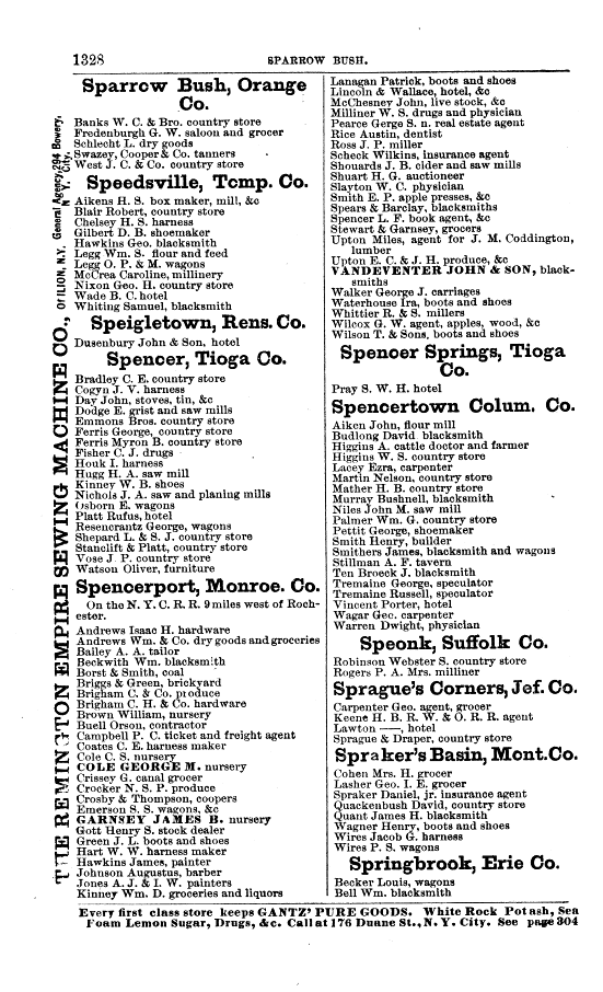 BOYD'S NEW YORK STATE DIRECTORY 1872-1873 FOR COLUMBIA COUNTY Spencertown, Columbia Co. Page 1328
