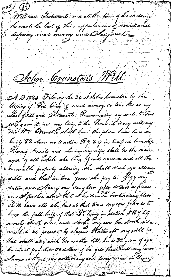 A.D. 1823 Febrary [sic] the 24 I John Cranston by the