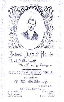 RHS symbolizes a way of life in the Willamette Valley in the 19th/20th century when pioneers began to arrive. Schooling was highly valued and viewed as the path to the future. The schoolhouse was the most important building as it also served as a gathering place, social/meeting hall and a church. Exhaustive research has indicated that the current school was built in 1910. RHS may be the oldest of the nine remaining schoolhouses intact and on their original sites and is the best example of an on-site, rural school building in Linn County. The first official school districts in Linn County were organized in 1854 and Rock Hill School District was one of them. The present school appears to be the last in a series of five buildings. All of the schoolhouses were located on or near the base of the half-mile ridge. The two earlier structures apparently were near the southern end of the ridge. The three later structures, including the existing school, appear to have been built on the same site at the extreme northern end of the ridge. RHS had a very close relationship with The Church of the United Bretheren in Christ, beginning in the 1850's and lasting for nearly forty years. The second annual conference met at RHS on August 16, 1856. From its earliest days the United Bretheren Church was a strong supporter of education, declaring for example: "Universal education is necessary in a democracy. If all people rule, all the people must be educated to the end that impulse and passion may be subjected to deliberation and reason." (Springer, 1929) The first schoolhouse was a log structure and might have been built before 1853. Dorissa Miller described the building as follows: "My first school was in a log cabin and we sat on slab benches which were without backs. Each bench was about ten feet long and there were no desks." The second schoolhouse was destroyed by fire, probably in the late 1860's Dorrisa Miller recalled, "..we went to school in a camp house where camp meetings had been held. That was only for a short time and the building was a temporary affair. That old camp shed was just across the creek from the present old Blackburn house which is now occupied by Dell Wilson." (c.1940) The third schoolhouse was a frame church building started by the United Bretheren Church in the 1860's, on an acre of land which they purchased for $50 from William and Lydia Gallaher, but construction halted because the Church ran out of money. In May 8, 1869 the Church sold, to Linn County School District No. 31, an equal and undivided half of the acre, including the unfinished structure for $250. There was a stipulation in the deed that read: "So long as the said School District shall use the said premises for school purposes the Church shall have the preference of using said premises for religious purposes." The school district completed the church/school soon thereafter. Because of the increase in population and the need for more room, the fourth schoolhouse was built on the present site some time in the 1870's. W. T. Fogle remembers this building as being 30-40 feet, (current building has similar measurements), and during the winter there were about fifty kids attending; one winter there were seventy kids in attendance, from kindergarten to fifth reader. Sometime between 1909 and 1910 the current RHS was built. It was constructed with the main entry facing east so it would be protected from winter storms. There were two outhouses (South for the boys, North for the girls) placed to the rear of the school. The original workmanship was exemplary and possesses integrity of design materials and workmanship. It embodies the distinctive characteristics of an American one-room schoolhouse, a folk design common from the beginning of the 18th century through the middle of the 20th century. The early Rock Hill Schools were called subscription schools because public school funds were not available so the local settlers sponsored the education of their children. The parents commonly signed a contract with the teacher, agreeing to pay that person a certain amount for each pupil taught. These teachers rarely had little formal training and had to teach all eight grades in a single room. Ages of students often ranged from four to twenty. Fogle recalls- "The principal text book - in fact the entire curriculum of the younger children - consisted of the long since discarded blue-backed Webster's Elementary Spelling Book, a collection of widely divergent spelling and reading lessons." In the early days the school year lasted only three months or less. Older students were needed to sew, card wool, churn butter, milk cows and help with planting and harvesting. Roads were often flooded or deep in mud. Teachers generally boarded with local farmers. Over the years the John Nichols family (who purchased the Gallaher farm on October 23, 1873) boarded the school-mistress. They lived in the house northeast of the school so it was a convenient location. This family was very supportive of the local school, for two descendants of settler John Nichols were listed as members of the three-man RHS District Board of Directors in separate annual reports, (1899-1903) of the Linn County School Superintendent. Most of the early teachers were men. "Old Man" Gallaher (to distinguish him from other numerous members of the family), James Jackson Gallaher around 1860 ("Jack" was the one-armed teacher who lost his arm in a threshing accident), W. R. Bishop taught 1856-1861 (founded Bishop's Academy), Nimrod Price Payne, (an outstanding pioneer developer of Linn County), James Knox Polk Weatherford (elected to the Linn County School Superintendent in 1874, the bar in 1875, State Legislature in 1876 and 1884 became a State Senator, was the most illustrious). Lydia Frum taught for four months during 1898-1899 and had 36 students. Olivia Sorenson taught 41 students about five and one-half months during 1901-1902, however her average daily attendance was 23 studen