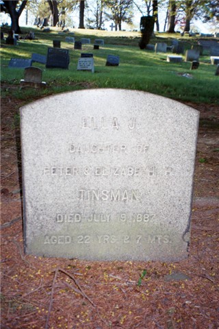 Son of Peter and Elizabeth Tinsman born 10/02/1856, died 01/01/1922 Lot #1341AW (Note: Wife Josephine Biehler Tinsman who survived him is buried at St. Boniface, section AF8, with her parents) |
