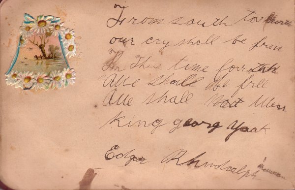 From south to north our cry shall be from For this time fore____ All shall be free All shall ____ ____ King george _____ Edgar Rhudolph Newman