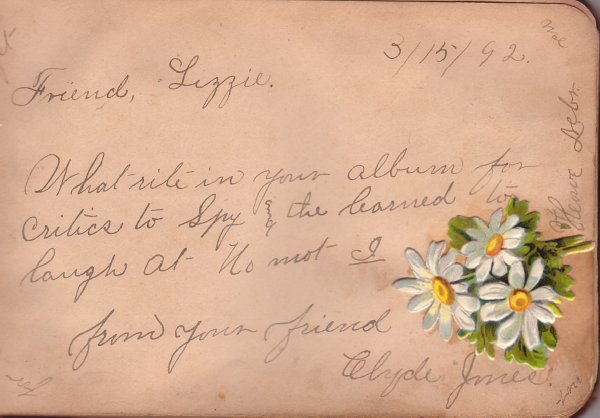 What-rite in your album for critics to spy and the learned to laugh at-No not I