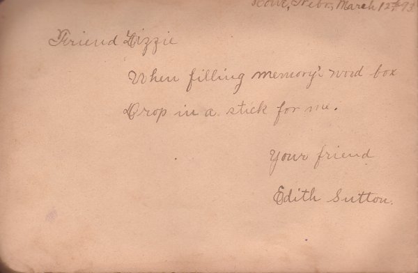 Friend LizzieWhen filling memory's wood boxDrop in a stick for me.