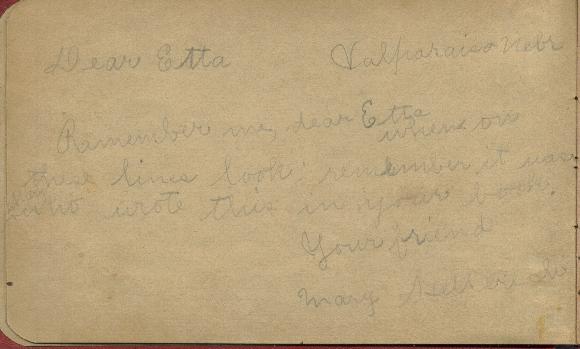 Remember me, dear Etta when on these lines look; remember it was Mary who wrote this in your book.