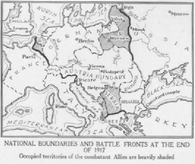 In the five months ending June 30, German submarines had accomplished the destruction of more than three and one-quarter million tons of Allied shipping. During three years Germany had seen practically all her offensives except Verdun crowned with success. Her battle lines were held on foreign soil and she had withstood every Allied attack since the Marne. The German general staff could now foresee the complete elimination of Russia, the possibility of defeating Italy before the end of the year and, finally, the campaign of 1918 against the French and British on the western front which might terminate the war.