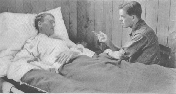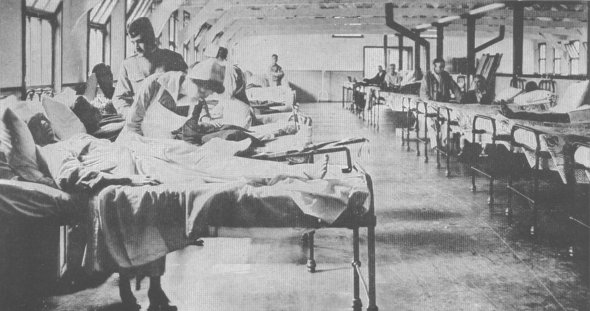 | SHIPPED ACROSS THE CHANNEL FOR THE KNIFEWard G, Surgical Ward, American Red Cross Hospital, Mossley Hill, Liverpool, England. Wounded Americans were being attended by doctors and nurses. Here without the stimulus of conflict, nerves snapped and pain became unbearable.
