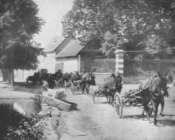 | LIKE INDIANS ON THE MARCHA machine gun battalion of the 3rd Division passing through a small French village on their way to Chateau-Thierry with orders: "Hold at all costs." Here the Americans piled the German dead in heaps around the bridgeheads, but to the Northwest the enemy was still coming.