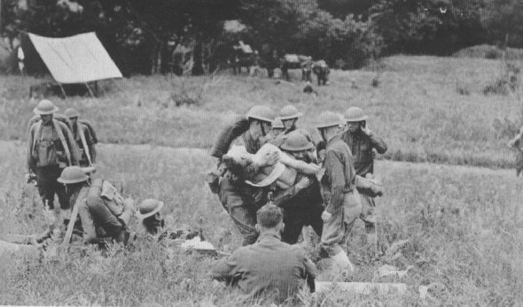 In the darkness of night, litter-bearers in response to the pitiful wail. "First aid, this way!", crawled through the fields which were drenched with blood. Hundreds of men were lying where guns had cut them down.