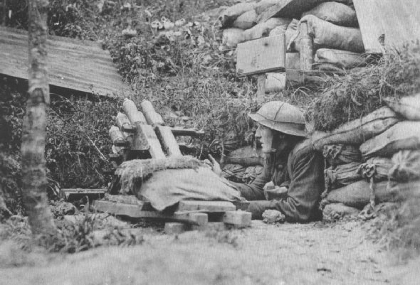 Soldier of 125th Infantry with a supply of grenades, Near Guewenheim, Alsace, June 24, 1918.