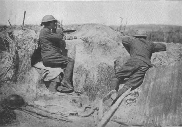 Advanced observation post held by Company I, 126th Infantry. This post is one of the most advanced in this sector, and was formerly a German machine gun emplacement. 32nd Division, Dieffmatten, June 27, 1918.