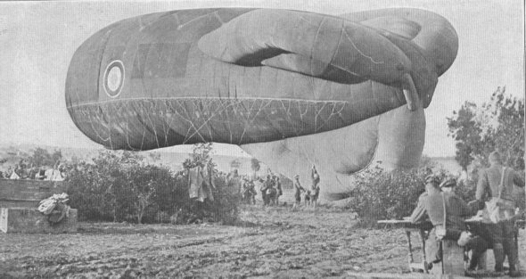 Captive balloon of 3rd Balloon Company, 3rd Corps, being brought safely to earth after period of observation near Mallancourt, Meuse, Oct. 1, 1918. Ground crews could bring down balloon quickly when enemy planes were sighted.
