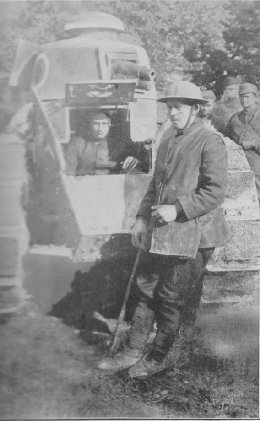 | Ready for action. 327th Bn. Tank Corps. 227 six-ton tanks were supplied to us by the French. 350 ten-ton type were supplied by the British. 1100 five-ton tanks and 300 large tractors of our own make were shipped overseas before Nov. 1. Only a few arrived in time for action. For some unknown reason production continued on the new five-ton type until March 31, 1919. With 799 completed, production was halted. | | |
