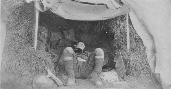| An American ambulance driver deep in the land of dreams after having been on the road, caring for the wounded, for more than fourteen hours without a let-up. The photograph was taken near Samogneux, Meuse, France, Oct. 27, 1918. |
