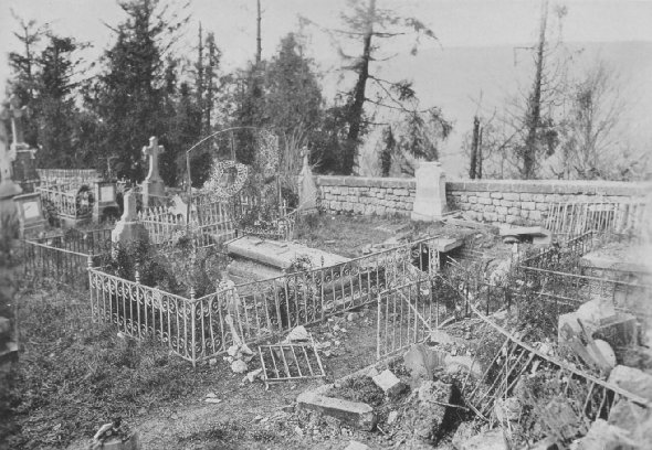 Cemetery, Dun-sur-Meuse, where tombstones and graves furnished protection during bitter fighting.