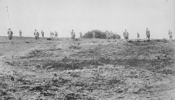 | 64th Inf. Brig., 32nd Div., advancing while in support of the first line. Near Romagne-sous-Montfaucon, Oct. 18. |