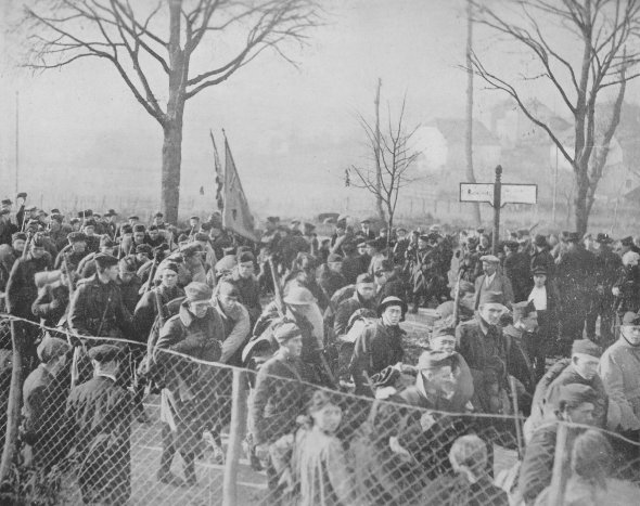 | On Nov. 17, 1918, the 5th and 6th Marines, 2nd Div., commenced their march to the Rhine, passed through Belgium and are now, Nov. 23, passing through Medernach, Luxembourg. The old slogan, "The 2nd Div. has never failed to impose its will upon the enemy," still stands undisputed. |