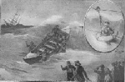 Another instrument used to detect sound for life-saving purposes, consists of an immense hood connected with a funnel, from which lead rubber tubes, adjusted to the listeners ears. This instrument can be revolved in any direction, and so sensitive is it that distant noises not otherwise audible may be detected. More than this, there is a compass attached to the instrument, and arranged so that it will show the direction of the warning sound. Possibly the greatest benefit to sailors would be some means for dispersing fogs, and experiments have been made which, ere long, will probably result in such a discovery. Some scientists have been at work on the theory that the moisture in a fog may be condensed by an electrical discharge. To a small degree, this has proved effective. Professor Oliver Lodge, of Liverpool, by means of electrical discharges, cleared a room of thick turpentine smoke, and a reservoir, of magnesium smoke. In announcing his researches before the British Association for the Advancement of Science, he advocated using the donkey engines on board ships, to generate electricity, to be discharged from poles on the masts. The means of saving life in wrecks are being improved. Each year, new devices are invented, such as automatic davits for letting down lifeboats, etc. A new life-buoy has been perfected which is so arranged that water is allowed to leak in through a crack and mix with a powder (calcic phosphide). When the buoy is in the water this powder ignites, producing a bright flame which runs out through a tube a foot or so above the water, and, for an hour or so, is visible many miles away. Another sort of buoy has a lighting device and also the means of carrying food and drink. Besides all these devices for preventing wrecks, there is ever a watchful eye on the lookout to protect the stray mariner from death, after his ship is wrecked. The United States Life Saving Service is a credit to the nation. Its members, like their great brother order of life and property savers, the firemen, accomplish much in the saving of life that would be impossible, were it not for the great hardship these brave men undergo. Along the coasts of oceans and great lakes, extend lines of life saving stations, manned by hardy crews whose business it is to watch out for vessels in danger, or already wrecked. Patrols of men walk the beaches, or spy out upon the waters from their watch stations, for a sign of distress.