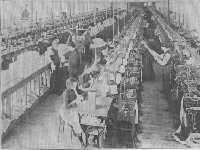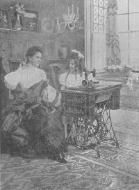 In addition to machines of the best type for family sewing, a single manufacturing company makes more than 70 distinct classes, or types, of sewing machines for every stitching process used in manufacture; these classes are fitted with attachments, or devices, for special processes, and there are more than six hundred distinct varieties of Singer machines. There are machines making twelve, or more, seams at once; machines, also, that hemstitch and tuck; machines that ruffle and tuck; machines for stitching books and boots, sewing on buttons and making the buttonholes; in short, the American sewing machine of today stitches everything capable of needle perforation, from lace to leather. This development of special stitching appliances for factory operation has been of tremendous benefit to the world, because it has caused a great reduction in the cost to the consumer of many articles in common use.