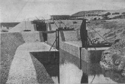 The most important of the worksconstructed to enable the water stored up in the great reservoir to be utilized to the greatest advantage is the barrage across the Nile at Assiout, about 250 miles above Cairo, which was commenced by Sir John Aird & Company in the winter of 1898, and completed in 1902. In general principle this work resembles the old barrage at the apex of the delta; but in details of construction there is no similarity, nor in material, as the old work is of brick and the new one is of stone. The total length of the structure is 2,750 feet, or rather more than half a mile, and it includes 111 arched openings of 16 four-inch spans, capable of being closed by steel sluice-gates 16 feet in hight. The object of the work is to improve the perennial irrigation of lands in Middle Egypt and the Fayoum, and to bring an additional area of about 300,000 acres under such irrigation by throwing more water at a higher level into the great Ibrahimick Canal, the intake of which is immediately above the barrage.