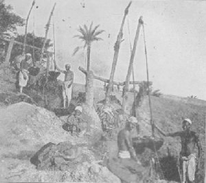 Moreover, the old canals and the dams at the delta barely touched the surface of Egypt's irrigation problem, the problem of avoiding drouth and making waste lands fertile. The great dams at Assouan and Siut, "inaugurated" in the summer of 1903, go to the bottom of things in more than one sense of the word. At Assouan, near the First Cataract, nearly six hundred miles from Cairo, the Nile is a mile wide. The dam is a quarter-mile wider, a great granite wall that rises ninety feet above the level of low Nile, and is sixty feet wide at the top. When the river is in flood, its waters gush through one hundred and eighty massive sluice-gates. In autumn the sluice-gates are closed until the reservoir thus formed is full, ready to be distributed through canals and ditches over the agricultural land on either side. In April and August, when the water is most wanted for the crops, the supply in the lower river is increased from the reservoir. At Siut, about half-way between Assouan and Cairo, is a subsidiary dam a half-mile wide, with more than one hundred sluice-gates. Broadly speaking, the two reservoirs add $400,000,000 in land values to the region covered by their operation. 1Total length, 1¼ miles; maximum height above foundation, 130 feet; difference of water level above and below, 67 feet. Total weight of masonry, over 1,000,000 tons. Return to text. OLIVE CULTURE ON AN EXTENSIVE SCALE |