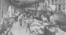 | By courtesy of the Lawrence Co. Getting material ready for making pianos. | With such a demand there has come the supply, and the strife of competition has resulted in various improvements in the manufacture of pianos that have kept the art of the builder thoroughly up to date. The old square piano has been almost entirely superseded during the past 15 or 20 years by the upright, and tonal qualities have been so vastly improved that the cheapest piano, to-day, would rank well with the best of 20 years ago. By the introduction of a better quality of feet in the hammer, by the use of a large hammer and the production of a better wire, the musical quality of the piano tone has been improved even as it has been given greater volume.