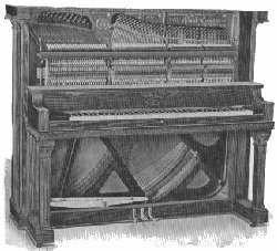 | By courtesy of Reed & Sons' Piano Mfg. Co. Baby Grand Upright Piano1 | In order to bring the piano up to its present-day artistic worth, innumerable, inventions have been patented, each ambitious manufacturer being constantly on the alert to devise a remedy for any suggested imperfection. One of the latest important inventions relates to the keyboard, and in an exceedingly simple way makes such a thing as a "sticking key" an impossibility. The average pianist will be glad to learn that such an improvement exists because everybody has had more or less trouble on that score, caused by dampness or careless construction. This new keyboard does away with all that difficulty, and by giving a firm, elastic touch, enables the performer to produce a more musical tone. Among piano manufacturers this keyboard is considered one of the most marked improvements of late years.