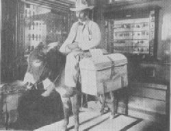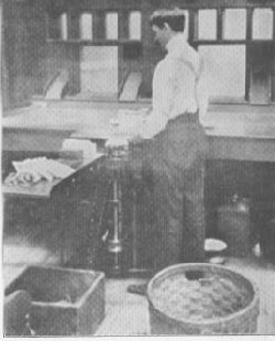 Most important of all branches of the service is the railway postoffice, which started in 1864, now employs about 10,000 men, and annually covers nearly 300,000,000 miles on about 174,000 miles of track. The mail handled by this branch of the service has of late doubled nearly every six years. In 1884, the mail distributed in railway postoffices amounted to 4,519,661,900; in 1898 12,225,706,220; and at present, about 15,000,000,000 pieces are handled. So efficient is this service that mails are carried, sorted, pouched and delivered to every point desired, without delay at the distributing point. The work is so exacting that clerks must be well versed in its requirements. Every office in a territory must be known to every clerk, and no forgetfulness or error in placing in the mail bag is permitted. Extremely stringent examinations are held for applicants for positions in the railway mail service, and so well has the clerk learned his lesson, that on an average, only one error is made in the sorting and delivery of 10,428 pieces of mail. Time is such a factor in the railway mail service that new trains are being constantly scheduled by the railway companies, and all sorts of devices are used to secure the rapid transit of mails. Now, the fast mail train crosses the continent four hours ahead of any passenger trains, and often between Chicago and Omaha, a speed of from 80 to 90 miles an hour is attained. In this rapid race many smaller stations must necessarily be swiftly passed. The mail received by the railway mail cars at such points is taken on by an automatic device like a crooked arm, projecting from the open door of the cars, which, by pressure of a lever, will reach out, seize a bag of mail fastened to a post on the railway platform, and hurl it inside the car. Mail for these stations is dropped off generally by hand. The railway branch of the postal service is dangerous, as many as 75 employes having been killed and over 1,000 injured, in a single year. In this branch of the service, in order to save time in the final delivery of mail at its destination in the large cities, men well informed as to these cities are on board the fast trains, who sort the mail into the pouches so well, that the latter may be taken directly from the train to the numerous sub-stations in the cities. It may well be imagined that a great many bags are necessary in the mail service. The great trend of bags is from the East westward, and from great business centers toward the country districts. Every year, nearly a million and a half bags are repaired and put into service, most of them through the New York postoffice. Naturally, some postoffices will accumulate more bags than they can use for return mails. Cincinnati and St. Louis are made distributing points from which a call for from 5,000 to 20,000 bags may be supplied at almost any time. Bags are supplied by contract. All sorts of them are in use, and of course the greatest demand is for new ones. The greatest flow of bags, after they get into service, is from the offices at Washington, Baltimore, New York, Chicago, Boston and Philadelphia. The period of greatest activity is during the Christmas and New Year holidays, when business firms and individuals are sending out great quantities of packages by mail. The bags containing these gradually return to the central stations late in January, and once more flow out in May, when the spring advertising season sets in. Of the numerous kinds of bags, there must be those for the mountain carriers, the runner on snowshoes, knapsacks, and bags for the Alaskan dog teams, and saddle bags for the pony express. One of the recent odd bags devised is a perforated affair, for transporting live queen bees to the islands of the Pacific.