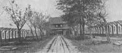 The Examination Hall. or Kuong Yuin, as it is called, at Canton, contains 7,500 cells measuring four feet by three, and high enough to stand up in; the furniture consists of two boards, one for sitting and the other contrived to serve both for an eating table and writing desk. The cells are arranged around a number of open courts, receiving all their light and air from the central area, and exposed to the observation of the soldiers who guard the place, and watch that no one has the least intercourse with the imprisoned students Confinement in this cramped position where it is impossible to lie down is exceedingly irksome and is said to cause the death of many old students, who are unable to go through the fatigue, but who will enter the arena in hopes of at last succeeding. The characters on each side of the cells indicate the particular place for each student.