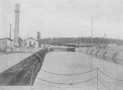In British Columbia flumes are used to float logs from mountain tops to sawmills. The loggers nail boards together and come down the same way, traveling sometimes a mile a minute. In this province are 60 great sawmills, with a daily capacity of more than 3,000,000 feet of lumber. The yearly cut of British Columbia is 75,000,000 feet. In the depth of winter the mill owners, who lease the timber land from the government, send out large gangs of laborers to fell the huge pine and other trees, previously marked by "explorers," preparatory to making them into square timber or saw logs.