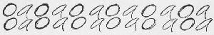 So far in the lessons the direct oval and some of its applications have been almost exclusively given as drills. In the connected small o just as much freedom of motion is necessary, but its operation should be in almost a straight line toward the right, thus developing the application of lateral movement used in such small letters as m, n, o, u, w. The small o drill above should be practiced a few minutes every day during at least the first three months of a course in muscular movement writing. It can be made a very interesting drill. In connection with this drill we urge teachers who have never tried the plan to use what we might term a conversational count. Walk about the room in time to the count of the letter, and in passing from desk to desk criticize the work being done by students in the same rhythm. Supposing that passing down an aisle one student is making the o too large, another is not closing it at the top, another is using a slow, dragging movement, another is making a narrow, flat letter, and still another is bending over the desk too far, the criticisms would be as follows: Make 'em smaller, make 'em smaller; close 'em up, close 'em up; slide along, slide along; round 'em out, round 'em out; sit up, sit up. Each criticism or admonition may be repeated until the error has in a measure been corrected. The influence will not be lost upon the rest of the pupils, but those who have been making the same errors will, almost unconsciously, show a marked improvement. Home students who are endeavoring to master a good style of writing without the aid of a teacher may use the same plan in counting as they practice. Make page after page of the connected small o. Keep it up until you can make, with an easy, sliding movement, and nearly as well as the copy, more than one hundred to the minute. That is by no means fast, but while permitting good form it is fast enough to force light movement. To save paper, the small o may be made on the lines, between the lines, and across the lines. The plan of writing across the lines is greatly to be commended and encouraged as tending to develop lightness and freedom of movement. Drills 10-18 |