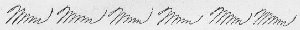 Preparatory to practice on drill 10, test the movement by moving the pen in the air in the direction of the first stroke. Start the motion below the base line, and as the pen moves rapidly upward let it strike the paper at the beginning point. Drive the pen through the exercise rapidly and lightly. Do not make less than three connected m's before lifting the pen, and make more as soon as you have ability to make them well. You will make the letters too large, irregular and awkward at first, and you will have trouble with the union (connecting lines), but never mind, keep right on. All is well that ends well, and you will succeed if you persevere. Not less than twenty completed exercises, or sixty small m's should be made to the minute. Bear in mind that an under stroke follows each m, the m proper being made with an over stroke. Count 1, 2, 3, 1, 2, 3, 1, 2, 3, or 1, 2, 3, 4, 5, 6, 7, 8, 9.