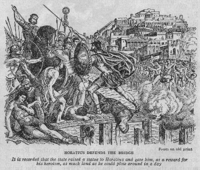 31. The Early Days of Rome. While the Greeks were thus wasting their powers, a city was growing strong in Italy which was one day to rule over the civilized world. Like Greece, Italy is a peninsula. On the map it looks much like a boot, with the large island of Sicily Few countries in the whole world are more beautiful than "sunny Italy." On the north rise, like a gigantic wall, the snow-capped Alps, a natural barrier against fierce nations. At their foot stretches the great plain of the river Po. This plain has always been famous for its fertility, and to-day, with mile upon mile of vineyards and fruit trees, it is one of the world's garden spots. Down through the peninsula, like a sharp backbone, rise the steep summits of the Apennines, mountains wild and picturesque. But on either side along the coast are small yet wbnderfully green plains arid valleys through which, shining beneath the clear Italian sun, roll streams like the Arno and the Tiber. In the plain of the Tiber lived in ancient days a people called Latins, and the region. itself was called Latium. The Latins were only a simple country people who knew little save how to till the soil and to fight bravely when attacked by their neighbors, who were often hostile. Among their numerous little towns one was built upon a hill beside the Tiber. Close at hand were six other low hills. At first only a country village, Rome was destined to outstrip all her neighbors and rivals and to grow into that mighty "Eternal City" which even yet stands majestically upon her "hilltops seven." In some things the early Romans were like the Greeks. Their language, called Latin, resembled Greek in many ways. They also worshiped gods and goddesses, some of whom were very similar to those of Greece. These indeed were called by different names, but later, when the two nations came together, it was generally agreed that they were the very same deities. In other ways, however, the Romans turned out to be of entirely different stuff. As they rose to power 32. What the Roman Myths Tell. Yet the Romans also had their stories and myths of heroes. These could not indeed equal the beautiful fancies of the Greeks, but a great many of them told of the courage in war and virtue in peace of their ancestors. These stern hut inspiring tales show clearly what kind of people the early Romans were. The Romans thought that their city had been founded by a hero named Romulus, after whom it was named. They loved to tell how he and his twin brother, Remus, were seized in infancy by their wicked uncle and set adrift in their cradle on the river Tiber. But the twins were found by a she-wolf who protected them as her own cubs. Thus they became fierce and strong beyond all men. Later, with the aid of brave comrades whom they gathered around them, they were able to punish their cruel uncle, and Romulus built upon one of the seven famous hills a village which men said was the beginning of the "Eternal City." According to the myths, Romulus was the first king of Rome. Six others followed, but the last, Tarquin the Proud, was so haughty and cruel that the Romans drove him out and vowed they would have no more kings. Every year after that time the people came together in their assembly and elected two officers, called "consuls," The Roman myths told how the wicked Tarquin family had tried to reconquer Rome. They fled to powerful neighboring cities and persuaded their rulers to send strong armies to make the Romans take them back as kings. But against great odds the Romans bravely defended their liberty. Once it was said the invaders almost took the city by surprise. But a sturdy captain named Horatius took his stand on the narrow bridge which crossed the Tiber, and with his good sword held it against the whole army while the Romans broke it down behind him. Then he plunged into the swift stream and, though wounded, swam safely across. Another famous story tells how once, when the Roman army had been defeated and surrounded by its enemies, all seemed lost. In despair the people turned to a brave but poor old soldier named Cincinnatus as the one man who might save the state. It was voted that he should be dictator. When the messengers of the senate went to inform him they found him plowing on his little farm across the Tiber. At. their command he left the plow and became ruler of Rome. Ordering every man who was able to bear arms to follow him, he marched forth and by a skillfully planned night attack not only freed the Roman army but overthrew and subdued the enemy. Then he returned, laid down his power, and went back to his plow as if nothing had happened. Still a third tale is that of Coriolanus, a brave Roman general who had been exiled because he tried to oppress the poor. In anger he went over to the enemies of Rome, and at the head of one of their armies soon had the city at his mercy. Though the foremost men of Rome begged Coriolanus to spare his own fatherland, he sternly refused. But when his mother, his wife, and his children entreated him with tears he could not withstand their prayer. Knowing that he must pay for his tenderness with his life, he led his army back to their own country. Though these and other similar tales are of course not entirely true, they do help us to see how it was that the Romans gradually conquered their neighbors and made Rome the strongest city in Italy. 33. The Plebeians Struggle for Their Rights. But before Rome could conquer other nations she had to learn how to rule herself. A fierce struggle began between the rich and noble citizens, the "patricians" as they were called, and the poor "plebeians" or "plebs." The patricians thought that they alone should have all the power. The poor who could not pay their debts were often sold into slavery. At first the plebeians were not allowed to vote or to hold office. Again and again the Forum, as the central square of the city was called, was the scene of angry disturbance by the plebs. But though the p