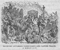 56. What Kind of People the Early Germans Were. When the Teutons, or Germans, dwelt in the forests of northern Europe they were a simple, barbarous people. Perhaps they knew hardly more than the best tribes of American Indians. Unlike the dark-skinned inhabitants of Italy and Gaul, the Germans were tall and fair. When, clad in the skins of beasts and waving their spears and two-edged swords, they rushed to the attack with their fierce blue eyes gleaming through their long yellow or red hair, it is no wonder that they often seemed like giants to the Roman soldiers who opposed them. The ancient Germans were divided into tribes such as the Angles, the Franks, and the Saxons, some of which have given their names to important countries or districts of modern Europe like England (Angle-land), France, and Saxony. Since most of all the Teutons Unlike the people of the Roman Empire, who bowed 4own before Caesar, these tall warriors felt that every mart should be free to do as he pleased. Some of the tribes had kings, but when anything of importance was to be decided all the freemen came Every tribe, every district, even every viilage had its meeting, and if all the warriors could not come together, it was the custom for the villages to send picked men to speak for them as representatives. Yet even when some question had been decided, each warrior was free to do as he pleased. If he did not wish to take part in an expedition, no one could compel him to go. It was deemed cowardly, however, to refrain from war. The Germans knew nothing of cities or towns, but dwelt far apart in villages in the wilderness. When later they saw the Roman cities, they despised and often destroyed them. At first they lived by hunting and fishing, but in time learned how to till the soil in rude ways. The land around each village was thought, however, to belong equally to all the people living in it, and each year the fields were divided anew by lot. So one warrior did not often become much richer than the rest. These rough old Teutons bad some fine ideas. They held women in great respect, and women often had much influence among them. Frequently they went with the Like most early peoples, the Teutons worshiped the forces of nature, to which they gave names as gods and goddesses. Their chief god, the sky, was called Odin or Woden, and another fierce old god was Thor, who made the thunder with his huge war hammer. Even yet we call some of the days of the week by names taken from those of the old German gods, as Wednesday (Wodensday) and Thursday (Thorsday). The gods, thought the Teutons, loved brave men, and all who met death fighting courageously were taken to Woden's great hail, Valhalla. When a battle was raging the daughters of Woden, called the Valkyries, hovered over the slaughter and picked out the best and bravest warriors to grace their father's board. The chosen men fell; but the.Valkyries, mounted on magic steeds, at once carried them through the sky to Woden's palace. Here they would forever feast, and drink from the skulls of their enemies. Among the hero stories of the early Teutons the most famous are those set forth in a long poem called the Song of the Nibelungs. Though this was not written down until after the life of the German tribes had been greatly changed, its incidents, filled with fighting and adventurous deeds, show that it must have been composed at a very early time. The Song of the Nibelungs tells of the life and death of a strong hero named Siegfried. Armed with a magic sword and provided with a magic cap by which he could become invisible, Siegfried slew a terrible dragon and won a great treasure. But unhappily this treasure brought a curse to whomsoever owned it. Urged on by the fierce Brunhild, a woman whom Siegfried had once loved, a cruel warrior named Hagen stabbed the hero from behind and slew him. But Siegfried's wife thirsted for revenge, and in the end brought all his enemies to miserable slaughter. Such. stories could only come from a race which delighted in red conflict and the clash of arms. Like most barbarous people, the ancient Teutons had other bad faults besides fondness for battle. Perhaps the worst was their love for strong drink. But though they were a rough folk, with crude notions on many things, they became great because they had the ability to learn. To Americans they must always seem important, for most of us have more or less of their blood in our veins. 57. Conquests of the German Tribes. At first the Teutons often made raids into the Roman Empire merely for plunder. But in course of time many Germans were When the Roman legions could no longer drive them back, terrible destruction was often wrought by these people. Rich cities were plundered and ruined, and whole districts of the country made almost deserts. Rome itself, so long the proud capital of the world, was finally taken by the Goths under their chief Alaric, and for three days given over to sack and plunder. (410 A.D.) But though the Teutonic tribes were barbarous they were by no means savages. When they had overthrown the Roman governors and pillaged to their hearts' content, they finally settled down in different parts of the Roman territory, establishing kingdoms of their own under the rule of their strong war chiefs. Thus the West Goths settled in Spain, the Franks in France, and the Lombards in northern Italy. The invaders took possession of' much of the land for their own use, but by no means all the Roman inhabitants were slain. They remained in subjection to their new German masters, and, as centuries rolled by, gradually intermarried with them and thus formed new peoples. So from the union of the conquering Teutons and the conquered Romans came the French, the Spaniards, and the Italians of our day. Since in southern Europe the Roman people were far more numerous than their conquerors, the Italians and Spaniards have much more Roman than Teutonic blood. In northern Europe, the blue eyes and fair ha