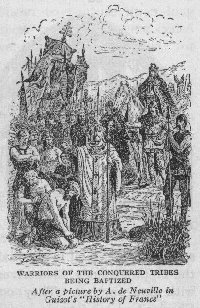 way of advancing it was a rough one. At the point of the sword he forced thousands of the barbarous warriors whom he conquered to wade into rivers and be baptized.