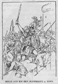 63. The Coming of the Northmen. But the good order and peace of the Roman Empire had not come back to stay. While Charles the Great lived all went well, but only a mighty ruler could govern all the differentiraces and peoples he had conquered. His son and grandsons were not equal to the task. The latter even divided the empire among themselves, and then fought fiercely with one another. They could not understand what Charles had tried to do. A few of Charles' schools remained; the monks still studied and labored; but Europe went back into confusion and bloodshed. To make things still worse, a new and terrible danger appeared. This was the Northmen. Not all the Teutonic tribes had yet been Christianized. Far to the north in Scandinavia, in the countries we now call Norway, Sweden, and Denmark, still lived thousands of tall, blond warriors who worshiped Odin and Thor and followed the fierce customs of their ancestors. Cut off by the sea from the rest of Europe, these Northmen had scarcely been heard of. But since they lived by the sea, those hardy people naturally became sailors, and launching forth in their swift black vessels they began to venture upon long voyages. The leaders of these expeditions were called "Vikings" because they were lords of the "Viks," or long, narrow bays of the rugged northern coast. Though the ships of the Vikings were only open boats driven by oar as well as by sail, they were such bold sailors and were so strong and hardy that they often dared to make voyages thousands of miles from home. The Vikings did not fear the fiercest tempests, and loved danger and adventure as befitting brave men. But the poor coast people of France and England were indeed terrified as they saw the Viking ships approach. Trembling, they looked upon the black raven painted upon their sails, the prows rudely hewn into the'forms of dragons, the rows of glittering shields hung along the bulwarks, and the crowd of strong fighting men eager for booty. For the Northmen were pirates. Sailing up some stream or bay, they would land and, leaving a guard at the boats, scurry off across the country. Woe betide the region to which they came, for they left behind only smoking ruins. Everything of value they carried off to their ships, and those who opposed them they slew. Particularly cruel were they to the monks for they hated Christianity.
