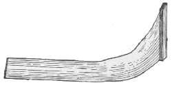 worn will do, cut the shape of the coulter you have now in the iron, and let the steel be half an inch wider than the iron, but on the point let it be as long as it will, because the point ought to be quite long, say about nine inches. Next draw the steel out thin on the upper end, heat the iron red hot, place it on the anvil outside up, put a pinch of borax on it at the heel, then a pinch of steel borings, place the steel on top of this and keep in position with a pair of tongs; now hold it on the fire heel down, and heat slow. When it is hot let the helper strike a pressing blow or two on it and it will stick until you have taken the next weld. Put borings and borax between steel and iron for each weld. When finished, the angle should be that of the square; that is, when you place the coulter in the square the shank should follow one end of the square and the foot of the coulter the other. The edge of the outside side should follow the square from the point up. When it does it looks like a hummock in the coulter but it is not. Old breakers will be particular about this as it will cut a clean furrow if it is made in this way and it will work easier. If the edge stands under the square the coulter will wedge the plow out of land and make a poor furrow. Next finish the chisel point, soft or hard steel as you please; weld it to the coulter on the inside, that is, the side next to the furrow. Last punch or drill the hole in the heel. The coulter should not be hardened except a little on and along the point. There is no need of a double chisel point, such a point will be too clumsy and run heavy. I have received a premium on a coulter made in this shape. Mill picks are very easily dressed and hardened, the whole trick in this case, as in many others, lies in the right heat of the steel. Be careful not to heat to a higher than a red heat. Dress the pick and temper with a low heat, when the color is dark yellow the temper is right, if the steel is of the right kind. No other hardening compound is necessary than water. After a little experience any smith can do this work first class. A smith once wanted to buy my receipt for tempering. He believed I had a wonderful prescription, or I could not succeed as I did. I told him I used only water, but he insisted that I was selfish and would not reveal it to him. If tools and receipts would do the work there would be no need of experienced mechanics. Tools and receipts are both necessary, but it must be a skilled hand to apply them. The best way to harden files is to have a cast iron bucket filled with lead. Heat it until the lead is red hot, then plunge the file into this, handle up. This will give a uniform heat and the file will not warp so easy if the heat is right. In cooling the file off, use a box four or five feet long with salt water in, run the file back and forth endwise, not sideways, that will warp the file, take it out of the water while yet sizzling. Now, if warped, set it between a device so that you can bend it right. While in this position sprinkle water over where you straighten until cold and the flle will be right. Heat the tap or die to a red cherry, cool off entirely in water, brighten with an emery paper. Now, hold over a hot iron until the tap or die has a dark straw color, then cool off. If a light tap, the temper can be drawn over a gaslight, using a blowpipe. To make a butcher knife, one smith will simply take an old file, shape it into a knife, and harden. The best way to make a knife is to first draw out a piece of iron ¾ inch wide and 1/16 of an inch thick, twice the length of the knife. Prepare the steel the same width as the iron, 1/8 of an inch thick, weld this steel in between the iron. This will make a knife that will not break. When ready to harden heat to a low red heat, cool off entirely in water. Brighten and hold over a hot iron until brown, then cool off. The steel should be good tool steel, a flat file will do, but the cuts must be ground or filed off entirely before you touch it with the hammer, for if the cuts are hammered in they will make cracks in the edge of the knife, and the same will break out. If a circular saw is cracked it can be repaired so that the crack will go no further, and if the crack is deep, it can be so remedied that there will be no danger in using it. Ascertain the end of the crack, then drill a 3/16 -inch hole so that the crack will end in that hole. Countersink on each side and put in a rivet. Don't let the rivet stick its head over the face of the saw. If the crack is deep put another rivet about half an inch from the edge. If the saw is too hard to drill, heat two irons about 1 square or round, square up the ends and set the saw between the ends so that they will meet over the place where the hole is to be drilled. When the saw is dark blue, the temper is out. It might be a possibility that this will spring the saw in some cases, therefore, I advise you to try drilling the hole without any change in temper. Prepare a drill that is harder than usual, use no oil, but water. The reason why a circular saw cracks is, in most cases, incorrect filing. In filing a saw, never let a flat file with its square corners touch the bottom of the teeth you are filing; if you do, you will make a short cut that will start the crack. The best way is to gum the saw in a saw gummer or on an emery wheel, or use a round-edged file. Belts can be riveted, sewed, or hooked together. A new leather belt should not be riveted, because such a belt will stretch and have to be cut out and sewed over quite often at first. There are hooks made of steel for belt sewing, these are all right when the pulleys are not less than six inches in diameter and the speed is slow. In using the hooks be careful not to bend them too sharp or drive the bends together too hard; in so doing they will cut through the leather and pull out. Lacing is the best for all kinds of belts. In sewing a belt with lacing, first punch with a pun