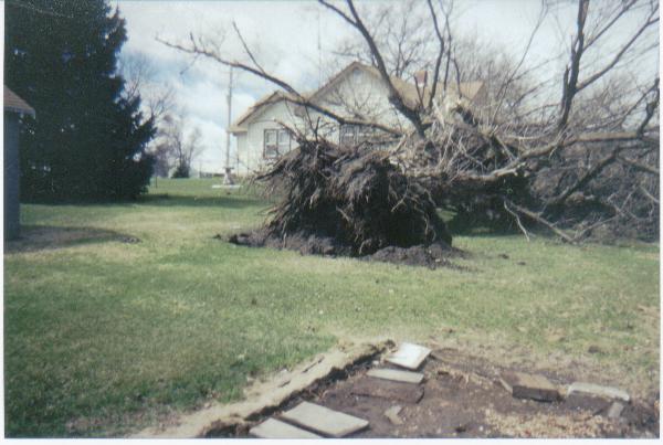 This tree was uprooted like most of the others in town. The shed (you can see the foundation) was tipped over and about 10 feet from the base.