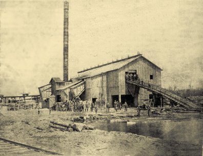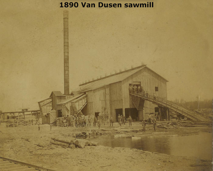 The barrels situated on top of the mill contained water, and were for fire fighting purposes. In case of fire, bullets were shot at them, making holes, so the water could pour out. With the increase in railroad transportation facilities, the mills became more common. A saw mill was built in 1880 by O. D. VanDusen and was located just east of the railroad tracks where Dorchester Park is now located. E. H. Winchester served as bookkeeper and Charles Franklin Anderson was the head sawyer.