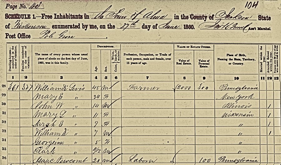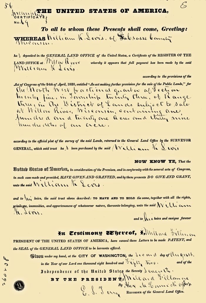 [1860 Jackson Co., WI Census] [Land Record 1] [Land Record 2] [Land Record 3]
