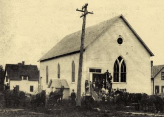 now the grade school, until a church building was erected. The