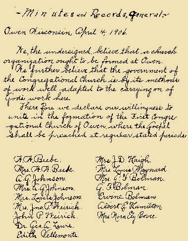 The First Congregational United Church of Christ of Owen dates back