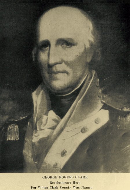 This is an early postcard featuring George Rogers Clark for whom Clark Co., WI was named.