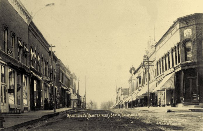The main street of Neillsville, WI, pictured on this early post card is "Hewett Street".