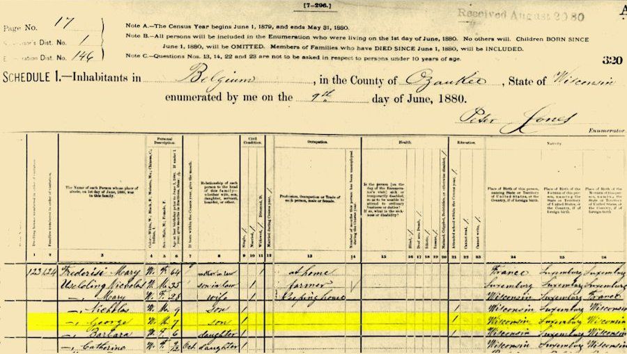 1880 Federal Census, Belgium, Ozaukee, Wisconsin