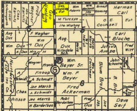 Uselding Property--1926 Map of Pine Valley, Clark, WI, Sec. 5 & 6