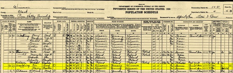 1930 Federal Census, Pine Valley, Clark, Wisconsin, United States, Dwelling #77, Family #77