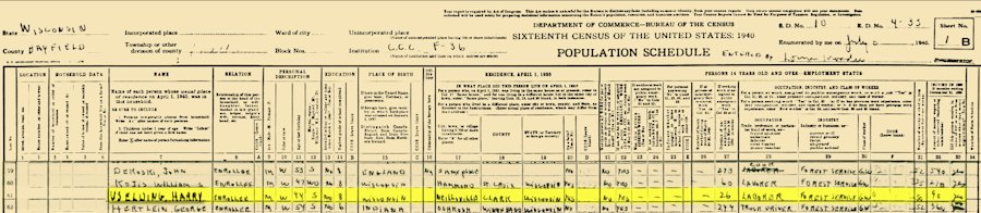 1940 Federal Census, Pratt, Bayfield, Wisconsin, Institution: CCC Camp, Sheet # 1B