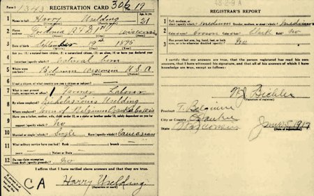 Harry Uselding Draft Registration, Ozaukee, Wisconsin, United States
