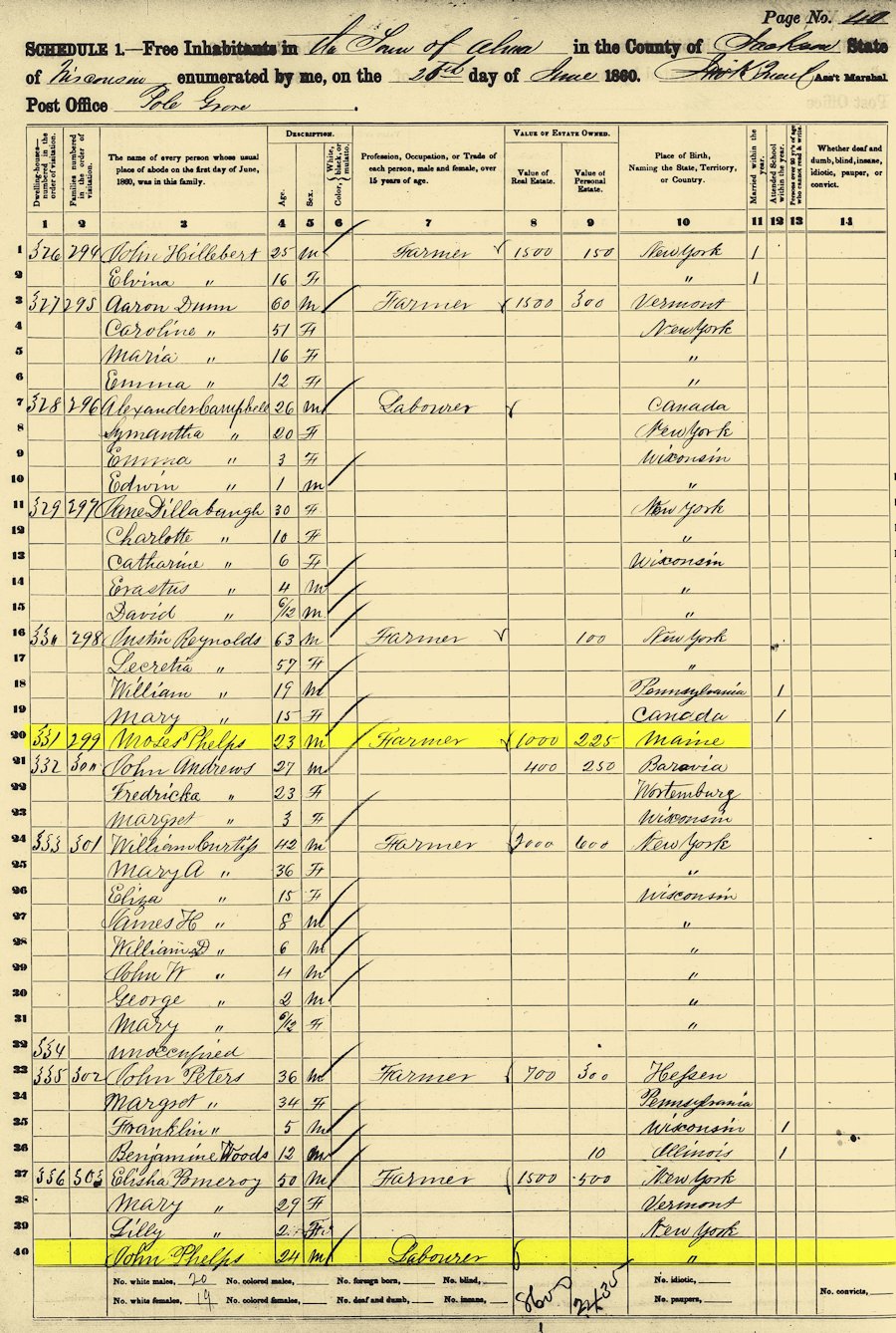 1829; Elvridge Phelps, 1833; Vesta A Phelps, 1836–1903 and