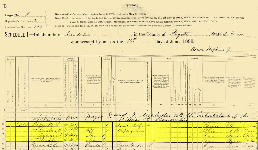 1880 Federal Census, Randalia, Fayette Co., Iowa